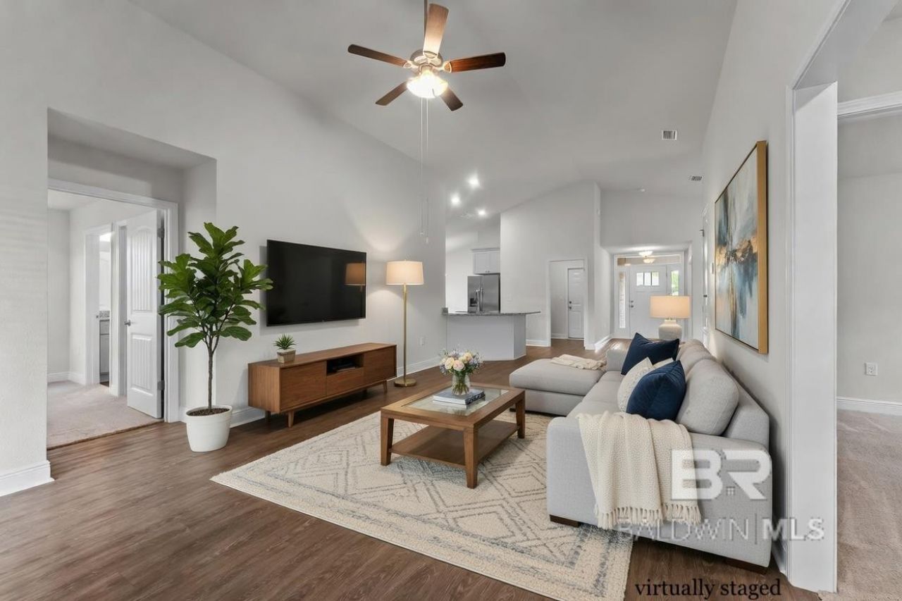 Better than new construction, this immaculate and move-in-ready home is waiting for the next family to love it! Solid 4-sided brick house with Craftsman style front porch flair brings some personality and curb appeal. Vaulted ceilings make the open living space feel THAT much bigger and grander as you enter the foyer. Formal dining is to the left, and to the right is a gourmet granite, eat-in kitchen with all new stainless steel appliances (that will stay with the home), pantry, and tons of cabinet storage. Luxury vinyl plank flooring in all living spaces and bathrooms, cozy carpet in all bedrooms for your roll-out-of-bed bare feet. This gorgeous primary bedroom has a lovely tray ceiling with extra flush mount lighting, a walk-in closet, and the ensuite bathroom features granite countertops, a separate water closet, as well as a garden tub with a separate shower. As you step onto the back porch, take a moment to take in that view! This home backs up to large retention pond for a very private backyard space. Don't forget about those beautiful white sand beaches just 20 minutes away! This home is located in the center of Foley, with shopping, entertainment, and easy 2-minute access to the Beach Express or Hwy 59. Five minutes from amusement parks, minutes from the high school, middle school, and elementary schools. Seller has termite protection with a renewable bond that is transferable to buyers. Home also has premium hurricane fabric shields for storm readiness, and a built in digital multimedia mainframe box for all your components. You must see this one for yourself! Buyer to verify all information during due diligence.