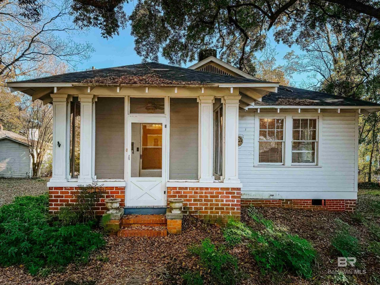 Incredibly cute historic cottage in the heart of Downtown Chickasaw. This cute house sits on a fenced lot with mature oak trees and blooming azaleas. Radiating a feeling of peace and seclusion. Living here would be like visiting a simpler time. With the attractive columns framing a screened in porch and original, refinished hardwood floors that are gleaming like a penny. A one car detached garage offers a place for parking, storage or a hobby space. Currently move in ready and waiting for a new owner. This home does have a historic home badge, and the sidewalks and alleyways make going for evening walks an enjoyment. Don't miss out on this one if you want an affordable home with character! All measurements are approximate and not guaranteed, buyer to verify. Buyer to verify all information during due diligence.