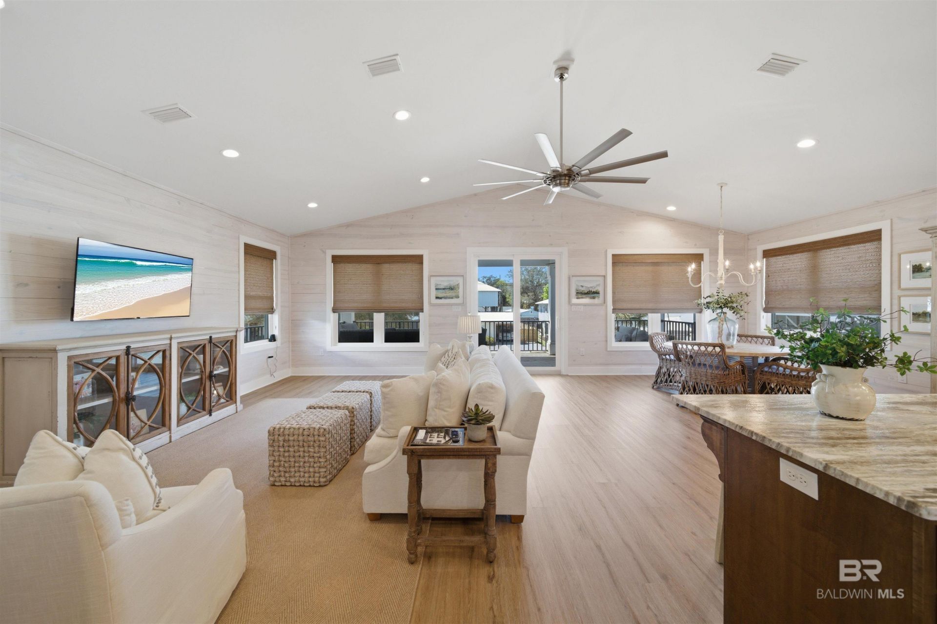Available now in the high demand Bear Point community! This beautifully decorated 3-bedroom, 2.5-bath coastal cottage blends upscale comfort with laid-back beachside charm. Situated on a fully fenced lot, this home offers privacy and an ideal layout for both entertaining and everyday living.The main living level features an open-concept design with a spacious living room and dining area, enhanced by custom lighting and stunning window treatments. Luxury furnishings and accessories convey with the home, creating a turnkey coastal retreat. Downstairs, an additional recreation/living space provides flexibility for guests, a home office, or secondary entertainment area.Outdoor living shines with a custom-painted brick bar complete with built-in grill, refrigerator, and ice maker?perfect for hosting gatherings and enjoying warm coastal evenings. The property is located in an X Flood Zone, so flood insurance is not required.Located in one of Orange Beach's most sought-after neighborhoods, owners have the option to join the Bear Point Civic Association for access to a private beach, fishing pier, and boat launch.Whether you're searching for a full-time residence or a coastal getaway, this property offers the best of Bear Point living. Buyer to verify all information during due diligence Buyer to verify all information during due diligence.